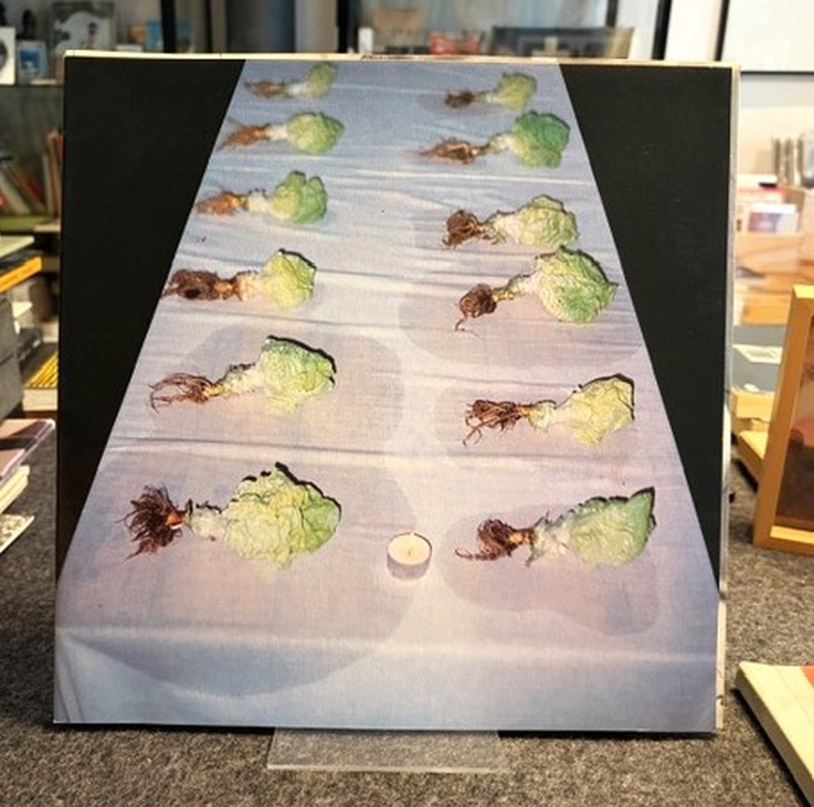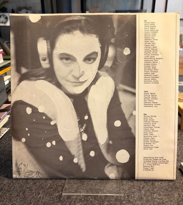 32 x 32 cm. 2 orig. schallplatten in orig. hülle mit einer aufnahme der fluxus-medienoper »il giardino delle delizie« [der garten der lüste], 1982 unter der gesamtleitung des künstlers, beiheft, illustr. okartonmappe mit verso mont. farbabb.. sehr gutes exemplar/ very good copy.